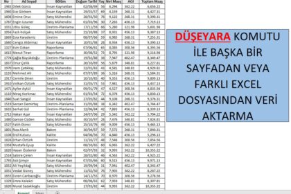 Excel’de sık karşılaşılan ihtiyaçlardan biri, bir sayfada yer alan bilgileri başka bir sayfaya veya hatta başka bir dosyaya otomatik olarak aktarmaktır. Özellikle personel listeleri, maaş tabloları, ü...