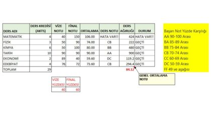Excel, ders notlarını hesaplamak ve dönem boyunca genel not ortalamasını takip etmek için oldukça kullanışlı bir araçtır. Vize ve final notlarının farklı ağırlıklara sahip olduğu durumlarda, doğru son...